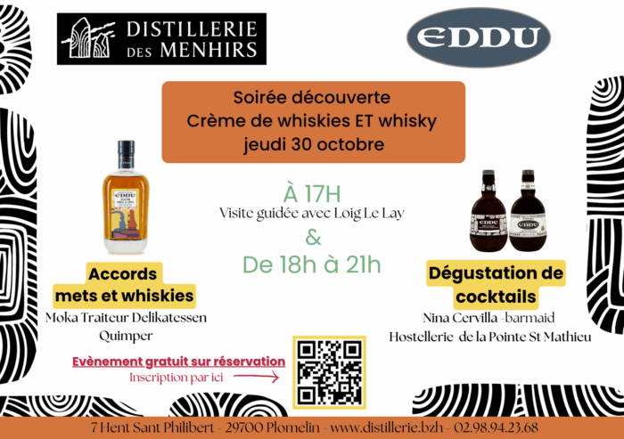 Ensuite, nous vous accueillerons dans la salle des alambics à partir de 18h jusqu’à 21h pour vous présenter nos trois nouveautés en compagnie de Nina Cervilla –barmaid à l’Hostellerie de la Pointe St Matthieu ainsi que d’Emmanuelle Genoud – cheffe de Moka Traiteur Delikatessen.