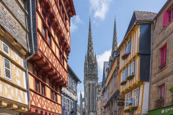 Vous trouverez le centre historique de la ville de Quimper avec son architecture typique. Arpentez ses rues piétonnes pavées et savourez de délicieuses spécialités locales.